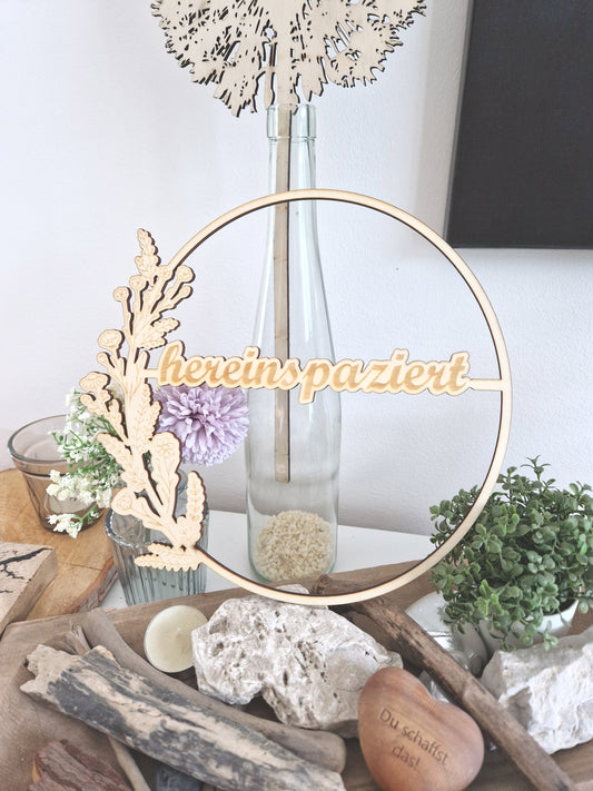 Türschild 'hereinspaziert' aus Holz für Eingangsbereich, Haustür-Dekoration, Hochzeit, Geschenkidee, handmade