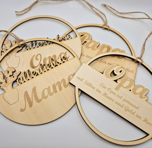 Allerliebste Oma, Mama, Papa, Opa - Geschenke für die Familie, Holzanhänger, für verschiedene Geschenkideen