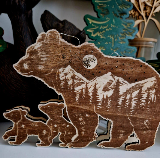 Kinderzimmer-Wandlampe aus Holz mit Sternenhimmel und Bärenmotiv 🌙🐻