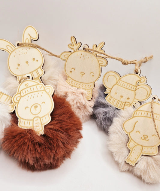 Holz-Anhänger Tiermotive mit Fellbommel für die Winterzeit 🎄❄️
