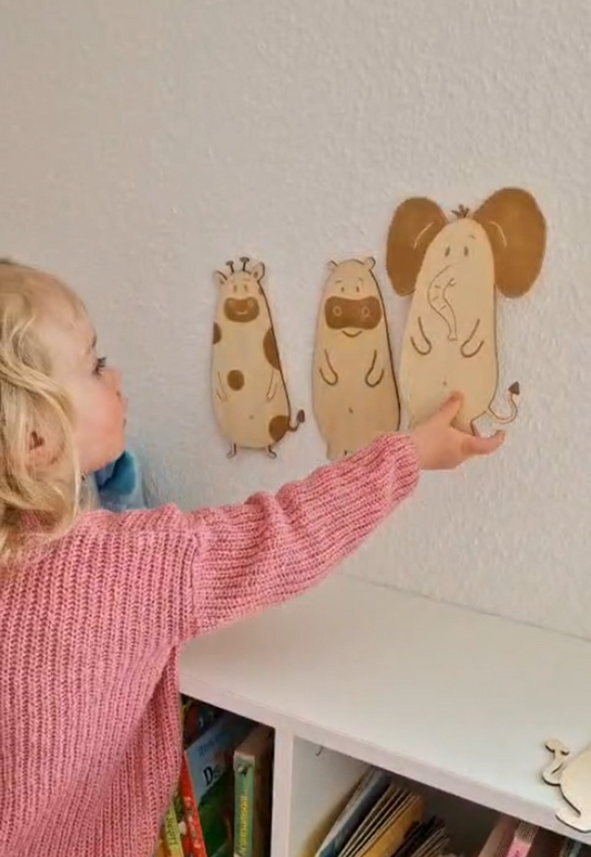 Wanddekoration aus Holz 4 Stück Tiere, ideal für das Kinderzimmer lustige Tiere, Kinderzimmerdeko