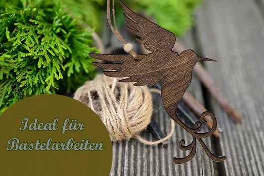 Vogel aus Holz 3 Stück zum Aufhängen oder für Bastelarbeiten, Geschenkverpackung, Sektfalschen Dekoration
