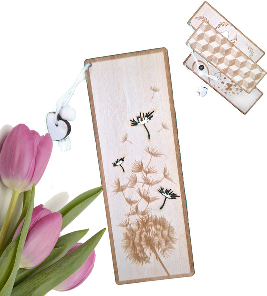 Lesezeichen 4 Stück, Dekorative Holz-Lesezeichen mit verschiedenen Mustern, Geschenkidee für Freunde, Familie, Muttertag, Vatertag, Abschluss