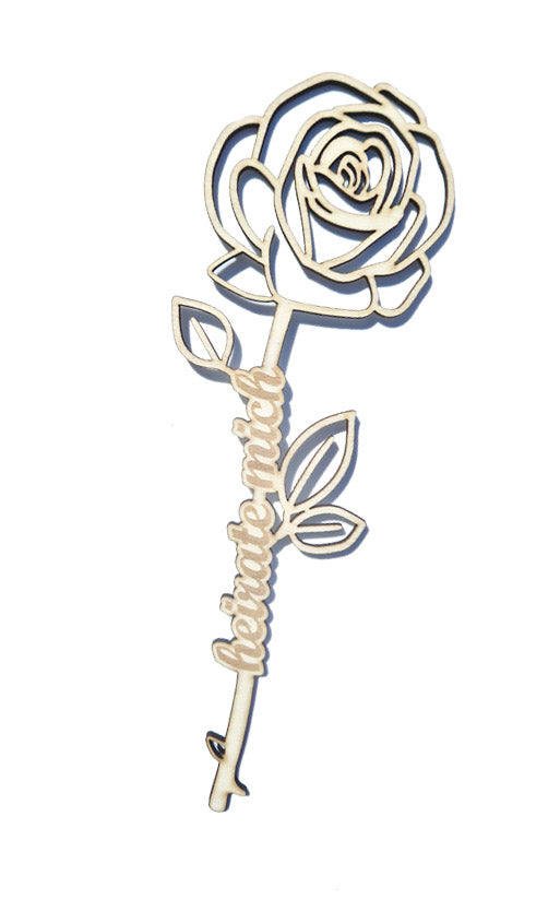 Rose aus Holz mit Gravur "Heirate mich" für einen ganz besonderen Antrag, Verlobung