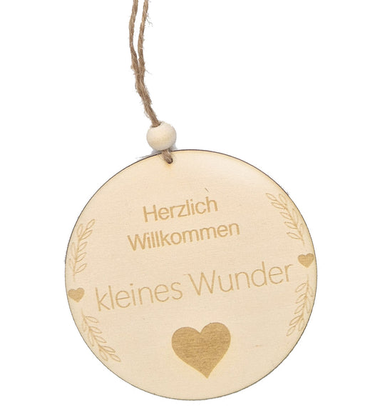 Willkommensanhänger für Neugeborene aus Holz, Herzlich Willkommen kleines Wunder- ideal zum dekorieren von Geschenken