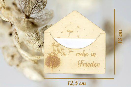 Grabschmuck Briefumschlag aus Holz für eine letzte Botschaft an einen liebevollen Menschen, Trauer (Ruhe in Frieden)